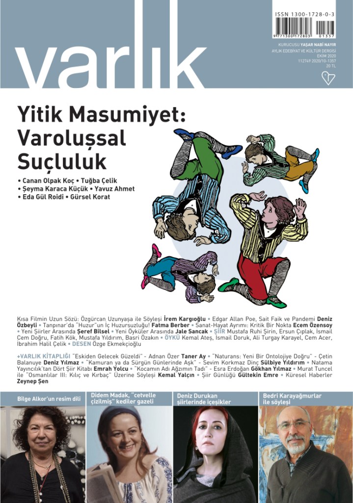Varlık’ın Ekim dosyası, “Yitik Masumiyet: Varoluşsal Suçluluk”. Yazarlarımız Canan Olpak Koç, Tuğba Çelik, Şeyma Karaca Küçük, Yavuz Ahmet, Eda Gül Roidi ve Gürsel Korat felsefe ve edebiyatın buluştuğu kavşakta kurmacanın nasıl bir deneyim alanı olduğunu göstererek önemli yapıtları çözümlüyorlar. İnsanın kendini gerçekleştirmesinin yegâne yolu edebiyat, sanat diyoruz.